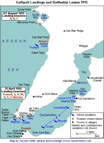 An expeditionary force was concentrated at Alexandria and sailed for the Aegean in April 1915 consisting of 29th Division, the Royal Naval Division, 1st Australian Div., Anzac Div., 42nd East Lancs Div., and the 29th Indian Infantry Brigade commanded by General Sir Ian Hamilton, landing on Gallipoli Peninsula from 25 April 1915 onwards.