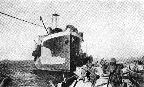 29th Div. went ashore from the grounded steamer "River Clyde" at Cape Helles.